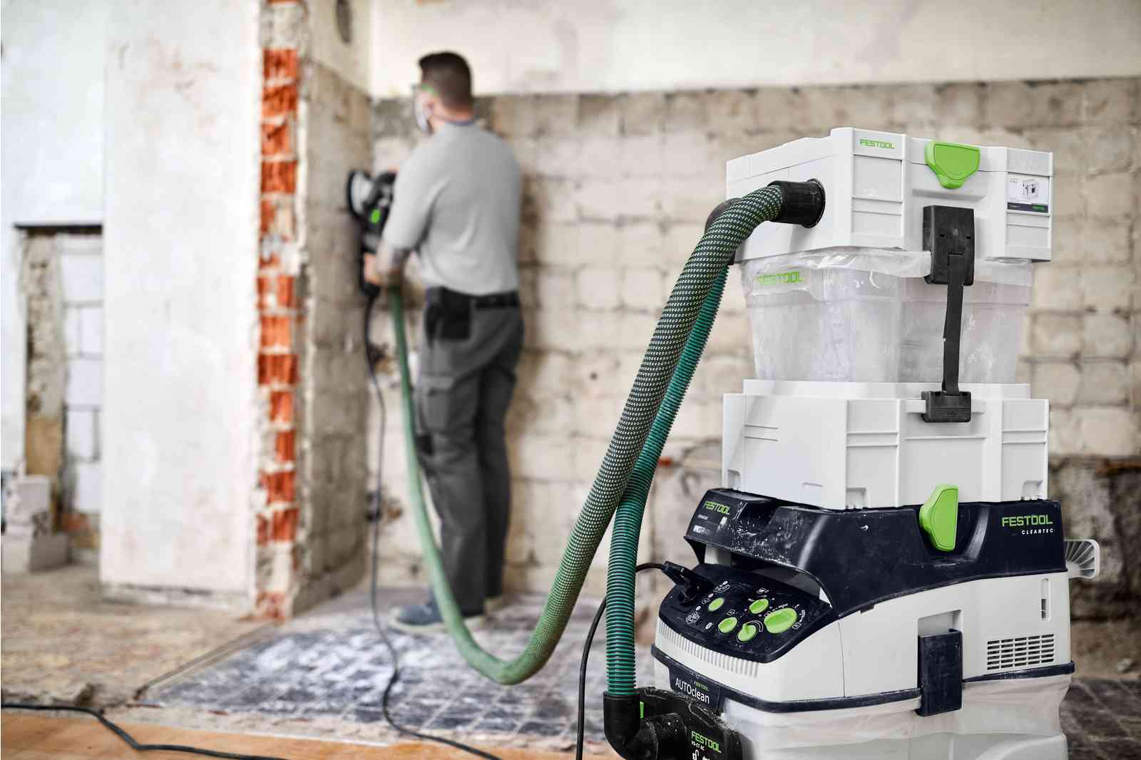 - optimálne prispôsobené elektrickému náradiu, prostredníctvom zásuvky na náradie a zapínacej automatiky s oneskorením pri rozbehu a vypínaní, ako aj plynulou reguláciou sacej sily